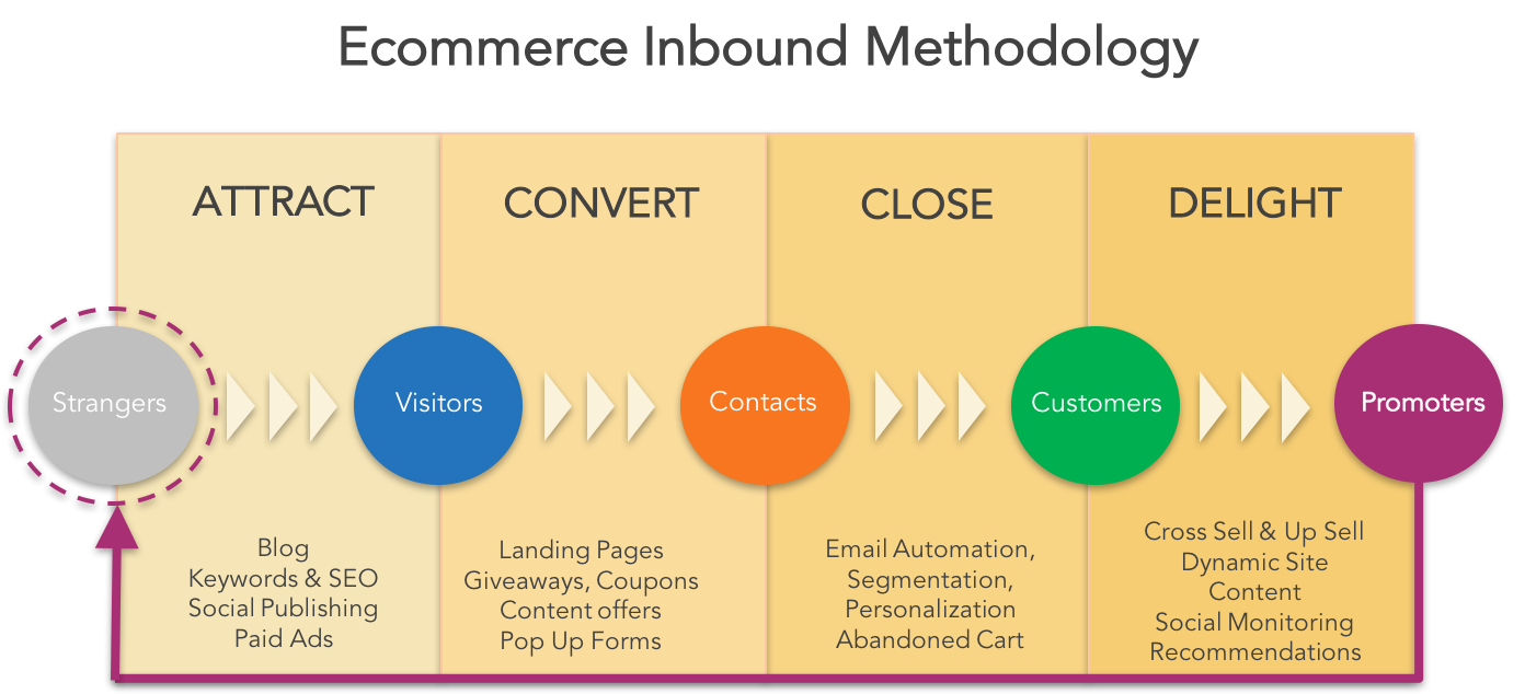 In this guide, we’ll provide more details on the inbound marketing methodology and why it works so well for ecommerce marketing. Then, we will provide some basic tips and best practices for getting started with building an inbound marketing strategy and implementing these successful tactics for your ecommerce brand.