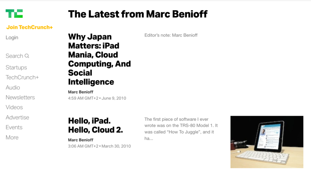 So how can you leverage the authority and following of other blogs to drive traffic, links, and build your brand? Offer to write a great article for one of the most popular blogs in your industry. For example, Salesforce CEO Marc Benioff used to guest post at TechCrunch on the future of cloud computing to extend the company’s reach and improve its authority and reputation in certain niches.